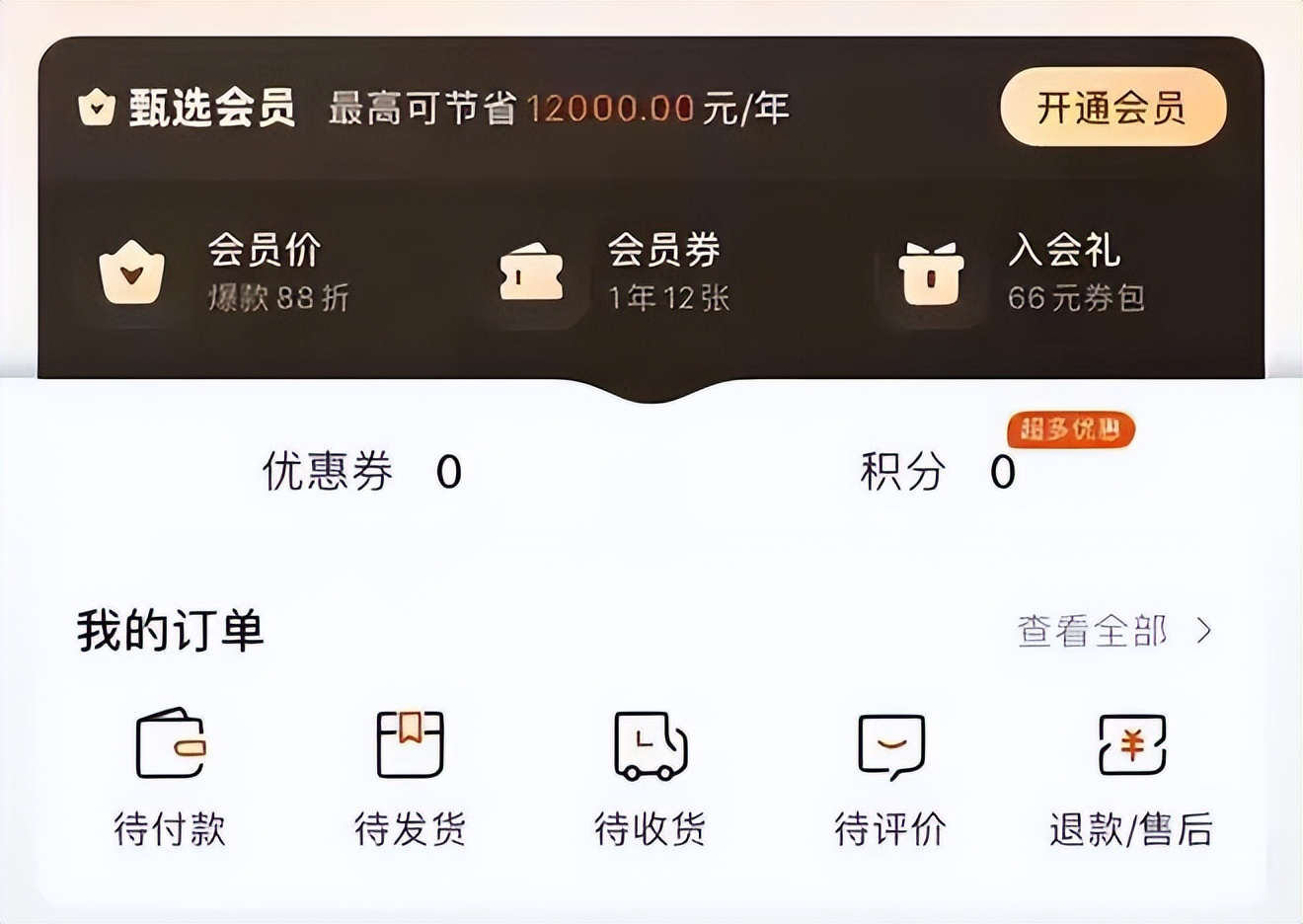 据悉,平台已于一周前向员工开放APP付费会员内部测试,并根据反馈内容持续迭代优化。付费会员定价为199元/年,会员专属权益包括百款自营产品88折、一年12张会员券、66元券包入会礼等,平台表示付费会员一年预计最高可省12000元。
