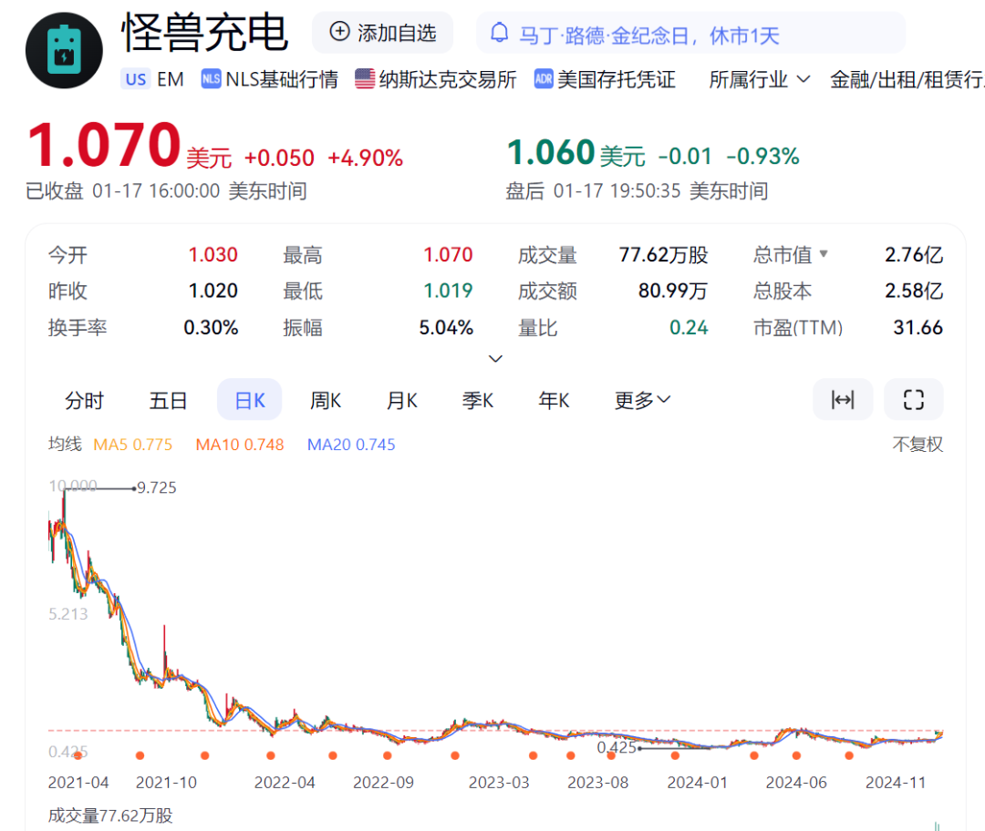 即便如今宣布拟私有化消息,对股价的刺激也有限。截至2025年1月18日收盘,怪兽充电股价才涨到了1美元。