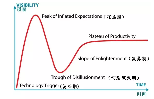 还是从Gartner曲线来看,第一波从萌芽期到高潮期的阶段,上半场已经结束,许多盲目追求风口的创业者和投资者都已经入场。但当这一群人做了很多方面的尝试,却发现走不通之后,再有新的公司希望做类似尝试,就很难再融到资。