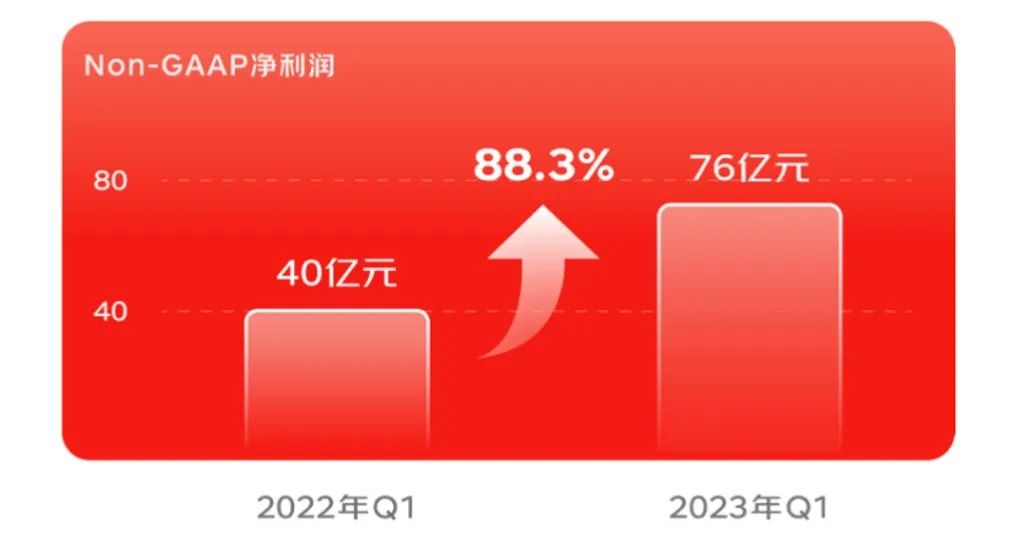 5月11号,京东集团发布了2023年一季度业绩报告。Q1,其总收入为2430亿元,同比增加33亿元;非美国通用会计准则下(Non-GAAP)净利润为76亿元,同比增长88.3%,远远超越市场预期。