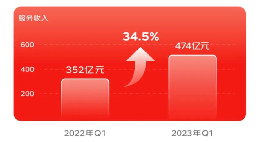 目前,该种外溢能力正在京东的财报中扩散。2023年Q1,京东服务收入同比增长34.5%至474亿元。