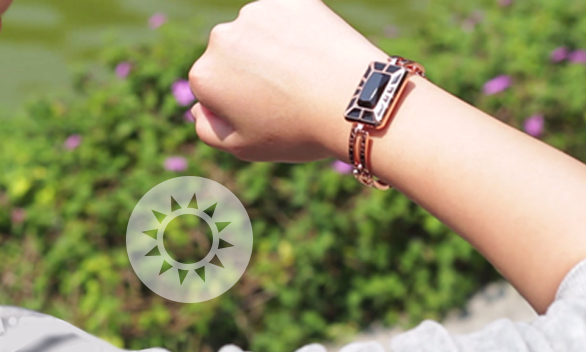哪个女人不爱珠宝,没有谁能抵挡住它光彩夺目的魅力,HereMi-S3正是抓住了女性的这一软肋,针对手链外观设计,结合5A级超大水晶,完美精湛的切割工艺, 打造镶宝石的智能手链——“黑玫瑰”,用奢华和优雅征服佩戴者。