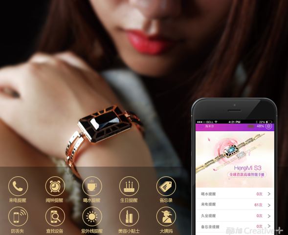 智能穿戴产品异常火爆的今天,厂商们挖空心思在产品功能上下足了功夫,试图填饱科技控们庞大的胃口。而对于女性消费者来说,不管一款产品的功能再怎么强大,没有超高的颜值都不能成为她们入手的选择。毕竟在这个看脸的社会,纯功能化的产品只能叫做工具。所以如果想博得高购买力的女性消费者的喜爱,必须像HereMi这样,以女性的审美眼光来设计产品。