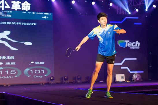 发布会现场,前中国羽毛球国家队队员龚伟杰对三体智能球拍产生了浓厚对兴趣,还绕有兴致地上台亲自挥拍体验了一把,通过实时传输功能,向大家第一时间展现了击球动作、速度、角度等运动数据,让大家对产品的智能表现有了更直观的感受。