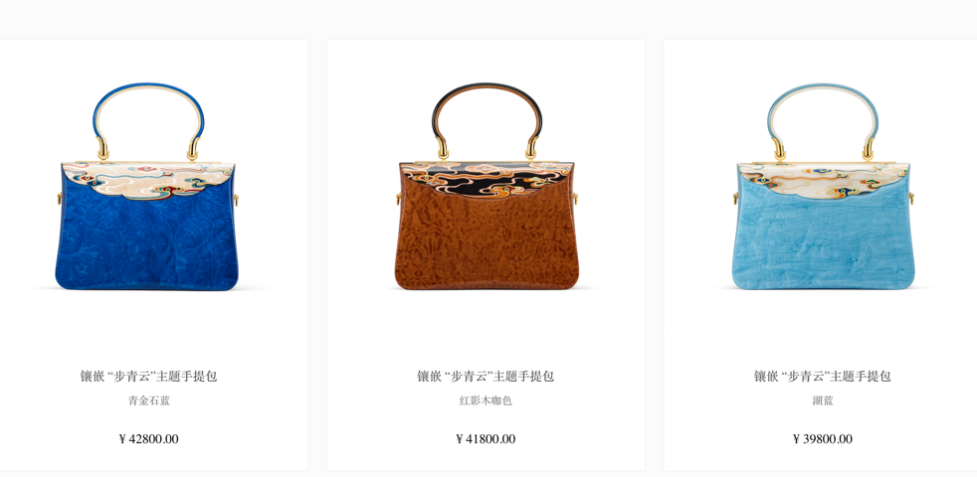 被称为“中国爱马仕”的端木良锦,价位在4万元左右。2011年,设计师祁天创立了端木良锦,品牌寓意是“端正的木材和优良的锦缎”,最初的几年里,品牌生产收藏品包装盒,之后慢慢转向了手袋,其产品设计以中国传统文化为要义,在传统包袋中加入木材的镶嵌技术,创造出木作手包,纯手工制作,一只包袋需要2-4个月时间。