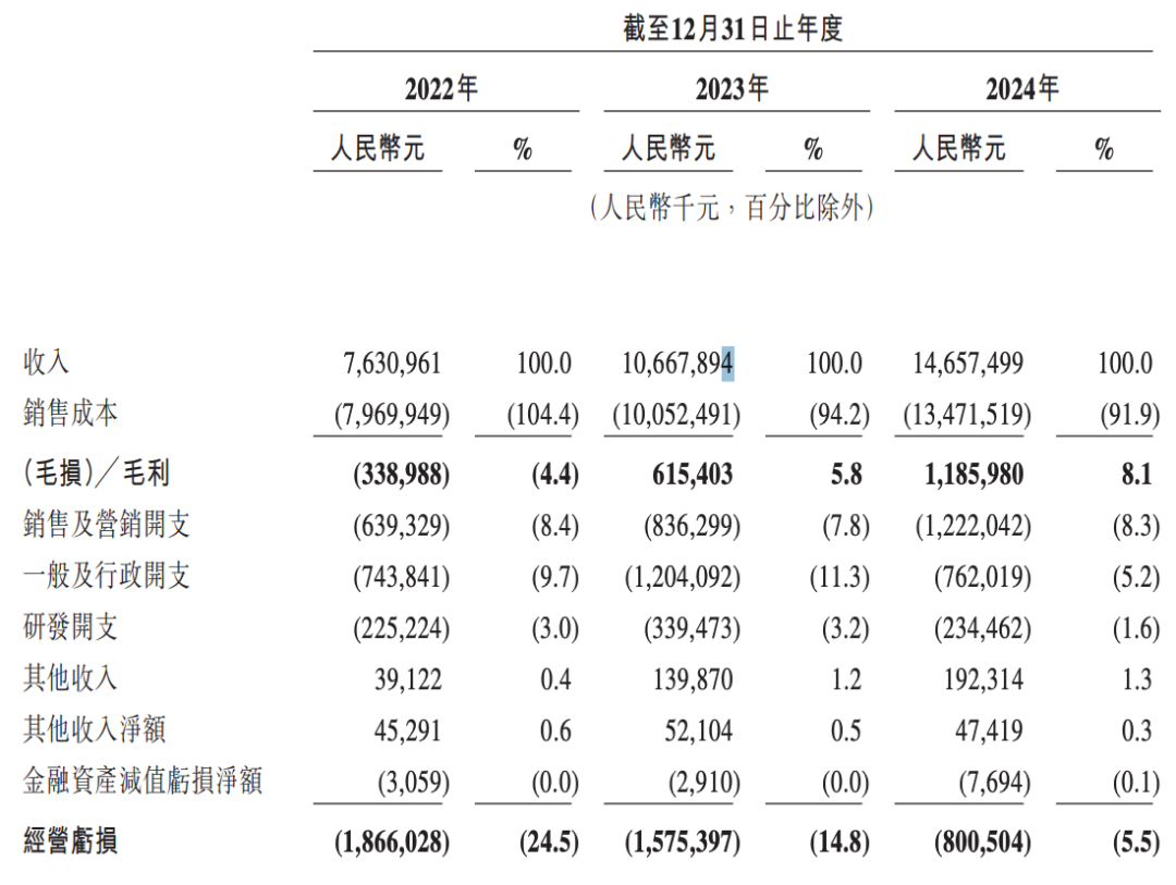 数据显示,2022年至2024年,于2022年、2023年及2024年,定制车占曹操出行总GTV的5.3%、20.1%及25.1%;所履行订单占订单总数的4.8%、18.9%及25.0%。