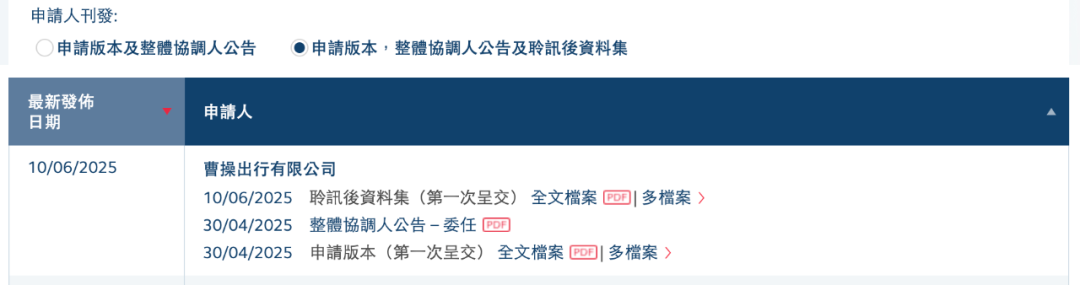 早在2024年4月29日,曹操出行曾向港交所提交上市申请,同年10月底更新了上市申请书。今年4月18日,其通过中国证监会境外发行上市备案,5月再度递表港交所。