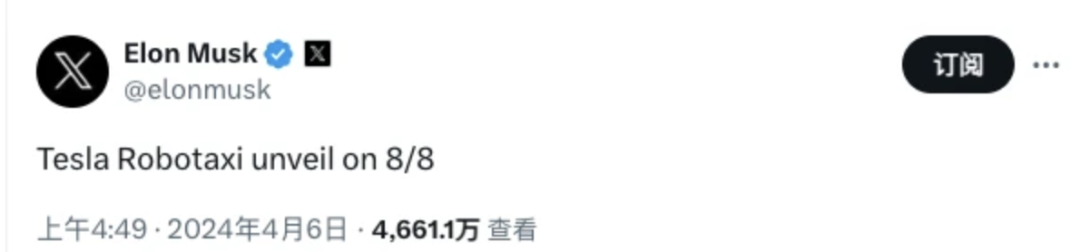 因RoboTaxi蕴含着巨大的商业价值,目前特斯拉、百度、滴滴等科技公司都在布局相关业务。比如,特斯拉CEO马斯克已明确宣布,将于2024年8月8日推出特斯拉自动驾驶出租车Robotaxi。