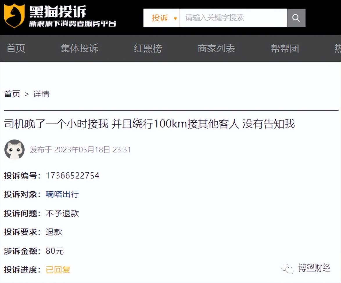 据一名消费者投诉称,“前面等就等了一个小时,上车后过了一个小时本以为都要到达目的地了,发现到了巴南区,根本就不对,问司机,司机说他还要接个人,我问他,平台并没有显示有拼车,他说单独接的单子,那时候已经离我的目的地120km了,原本出发只有70km,活生生多坐了三个小时,绕行100km,没有一句道歉,态度极其恶劣,嘀嗒平台也不处理,只是严格监管,退了我八块钱,绕三个小时退八块钱,我无法接受,而且也不给我订单号。”