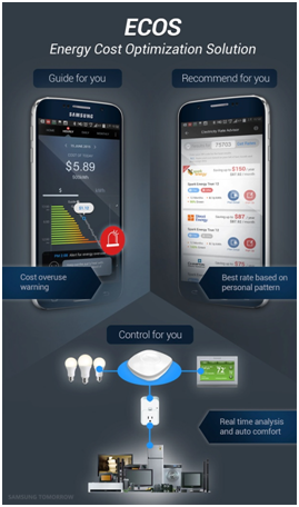 物联网如何实现节能?IFA 2015上,三星展示了基于物联网平台研发的节能环保解决方案ECOS(Energy Cost Optimization Solution)。与三星物联网平台SmartThings配套使用的该软件为用户提供了专业化、智能化的电量监控以及向导服务。物联网环境下,ECOS软件可自动调节制冷、取暖、通风等各项空调功能,通过人体感应自动关闭不必要的照明设备,进而节省30%以上的照明成本。连接各种智能设备只是物联网的初级形态,如何通过智能监控提供以数据为基础的解决方案,提高人类的生活品质才是物联网的意义所在。