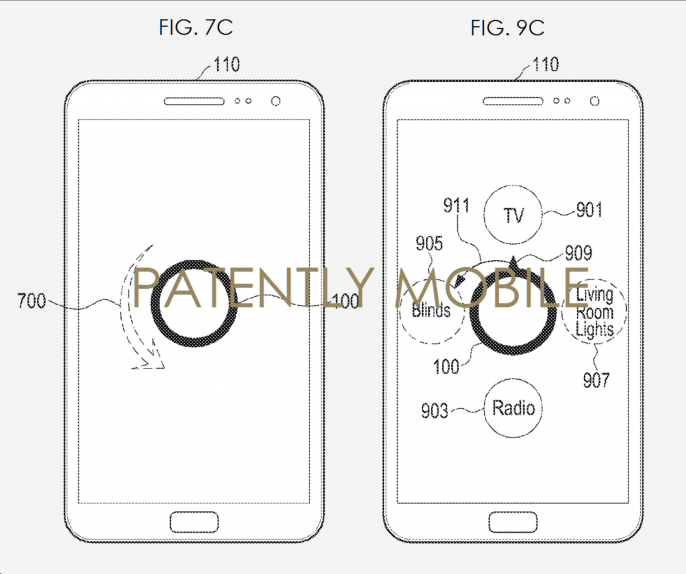 这一专利最先由Patently Mobile发现。戒指的主要功能有控制智能手机、电视以及智能家居产品。在专利文件里,三星展示了情景菜单,用户可以通过手指在那里控制各种设备和服务。