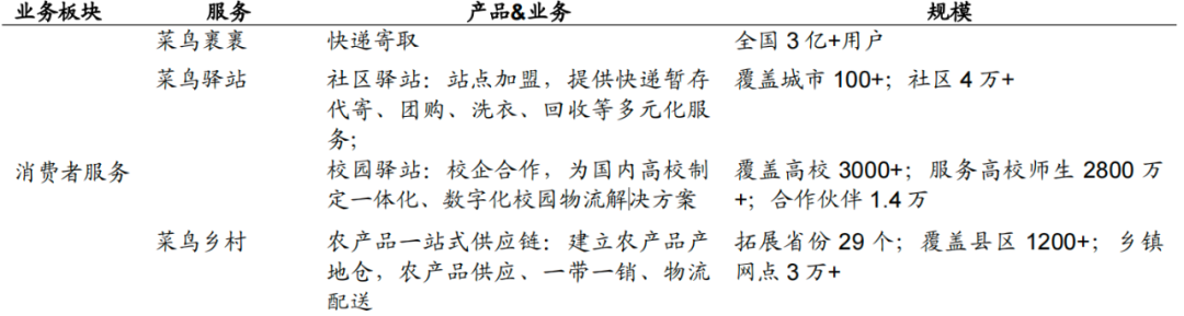 菜鸟面向消费者的产品矩阵,图源招商证券
