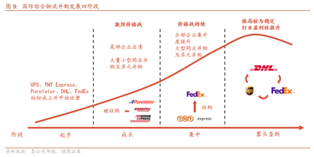UPS、FedEx、DHL三大巨头的长成路径有相似之处,即都是通过长时间、大规模的多元化投资并购实现了全球物流网络的搭建和扩张。