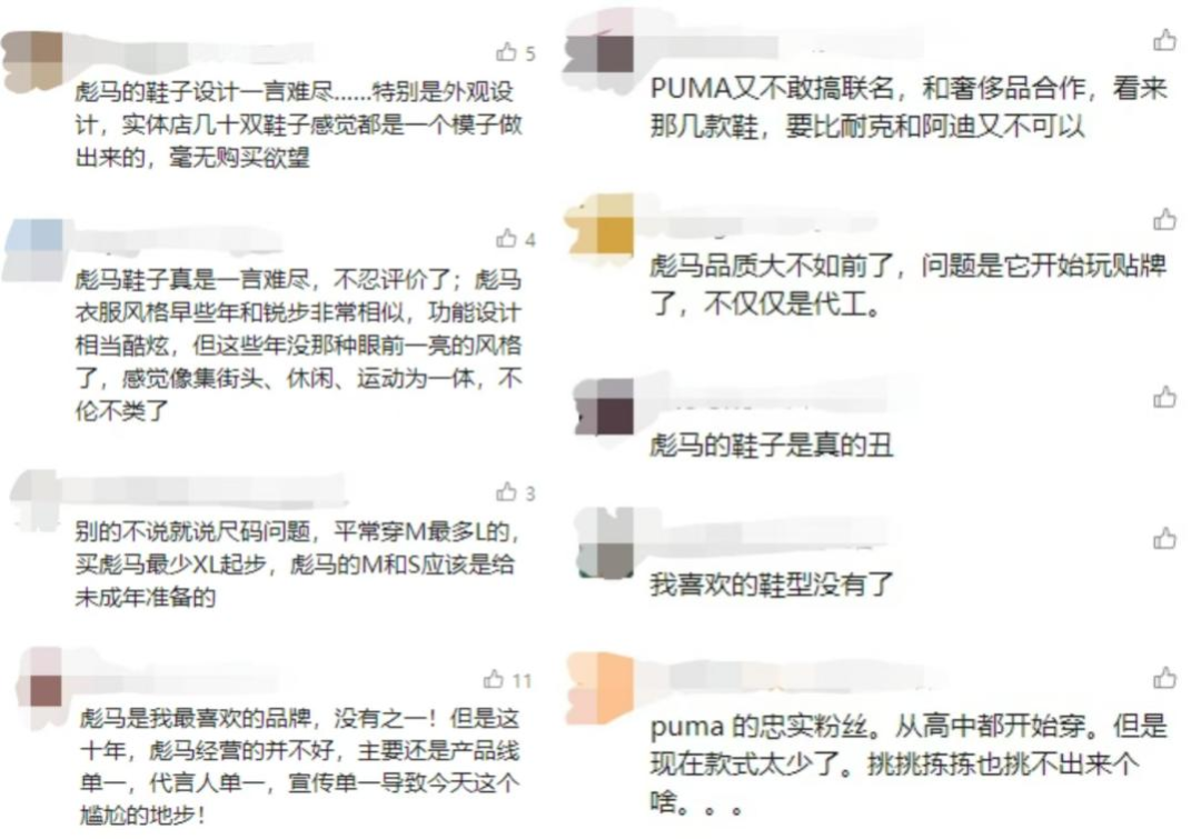 但值得注意的是,相较于Burberry从战略层面系统性地调整产品定价,目前彪马产品降价的品类范围、幅度、层级规划等仍较为野生与分散,缺乏完整的规范性的降价吸引措施。部分刚推出不久的产品却被打上与老旧款式一样的折扣,反而可能因乱价引发消费者不满,伤及品牌销售表现。