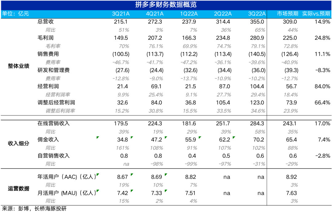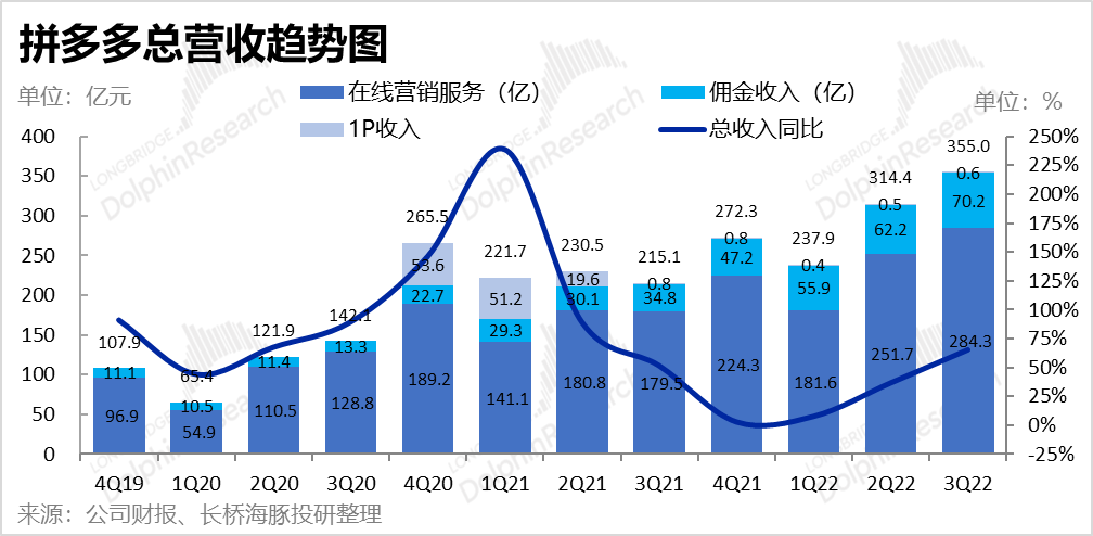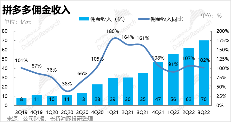 此外,公司的佣金收入(包括支付手续费收入,多多买菜收入和电商佣金收入)本季营收为70亿元,同比增速达102%,虽然增速环比略有放缓,但实际明显超出了市场预期的65亿收入。何况在仍保持三位数增长的情况下,根本也谈不上“放缓”二字。