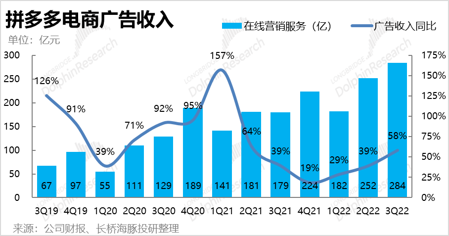 1)在3Q电商大盘增速由2Q的3%提速到7%,行业增增长是在提速的情况下,卖方预测多多3Q广告收入环比下降的确有些保守(海豚君自己的预测收入是在270亿以上,但公司实际的表现还是更好)。