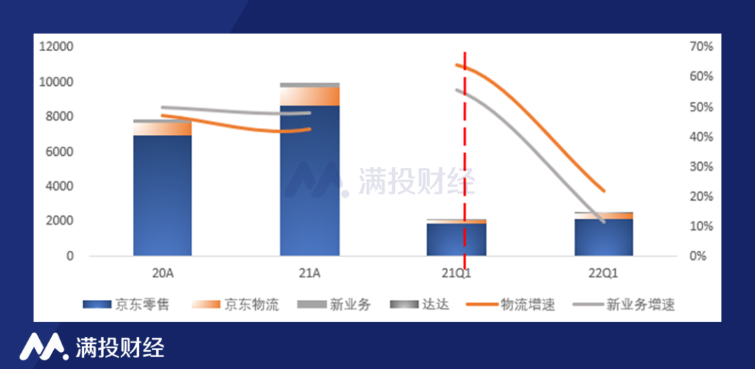 其中,公司于2022年2月28日合并达达集团(DADA.US),一季度京东其他非经营损失为39亿元,其中达达集团在收购完成前股价变动导致亏损36亿元。
