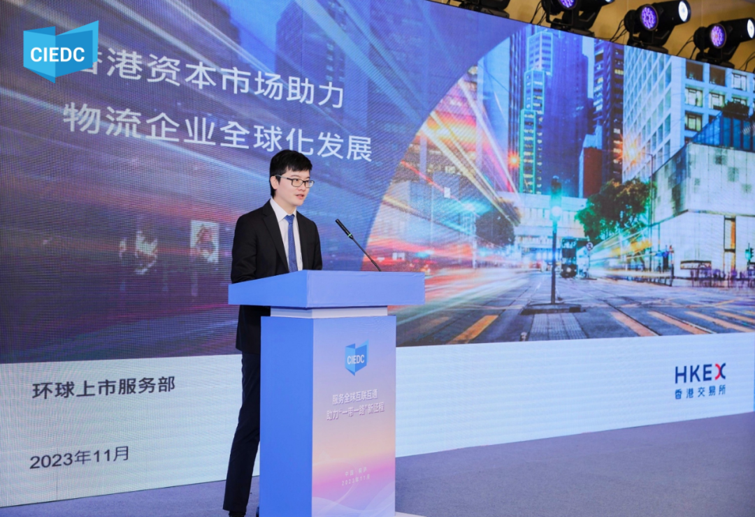 香港交易所环球上市服务部副总裁李闻涛就“香港资本市场助力物流企业全球化发展”为论坛做主旨演讲。