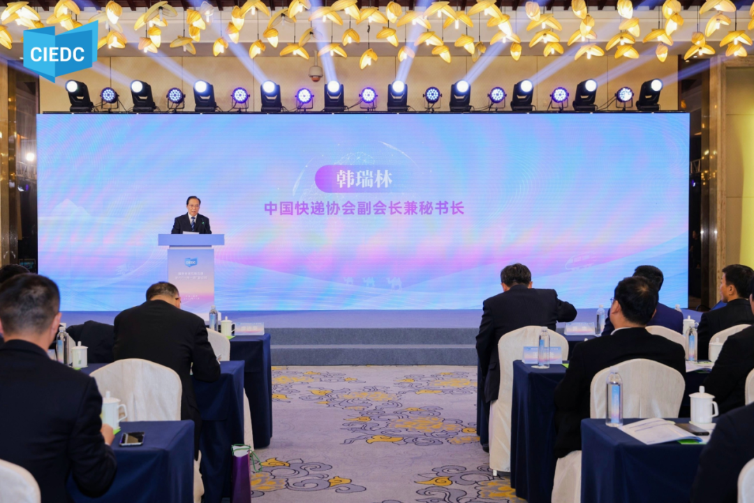中国快递协会副会长兼秘书长韩瑞林为论坛致辞。