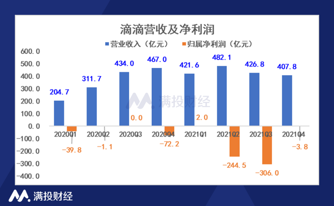4月16日,滴滴出行(代码:DIDI)发布了其截至2021年12月31日的第四季度及年度未经审计财务业绩概要。报告显示,滴滴2021年全年实现营收1738.3亿元人民币,较2020年同期的1417.4亿元同比增长22.7%;归属于普通股东净亏损为500.3亿元,较2020年的105.1亿元亏损大幅扩大。