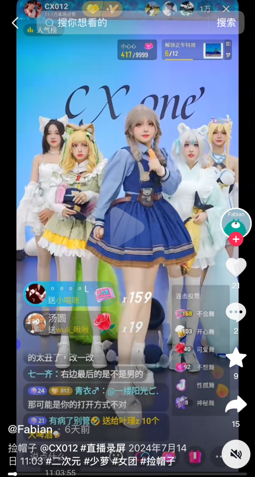 从视频内容看,直播间人数大多超过2人,主播着装多为二次元形象,直播过程中会进行互动游戏、舞蹈表演、角色扮演等。