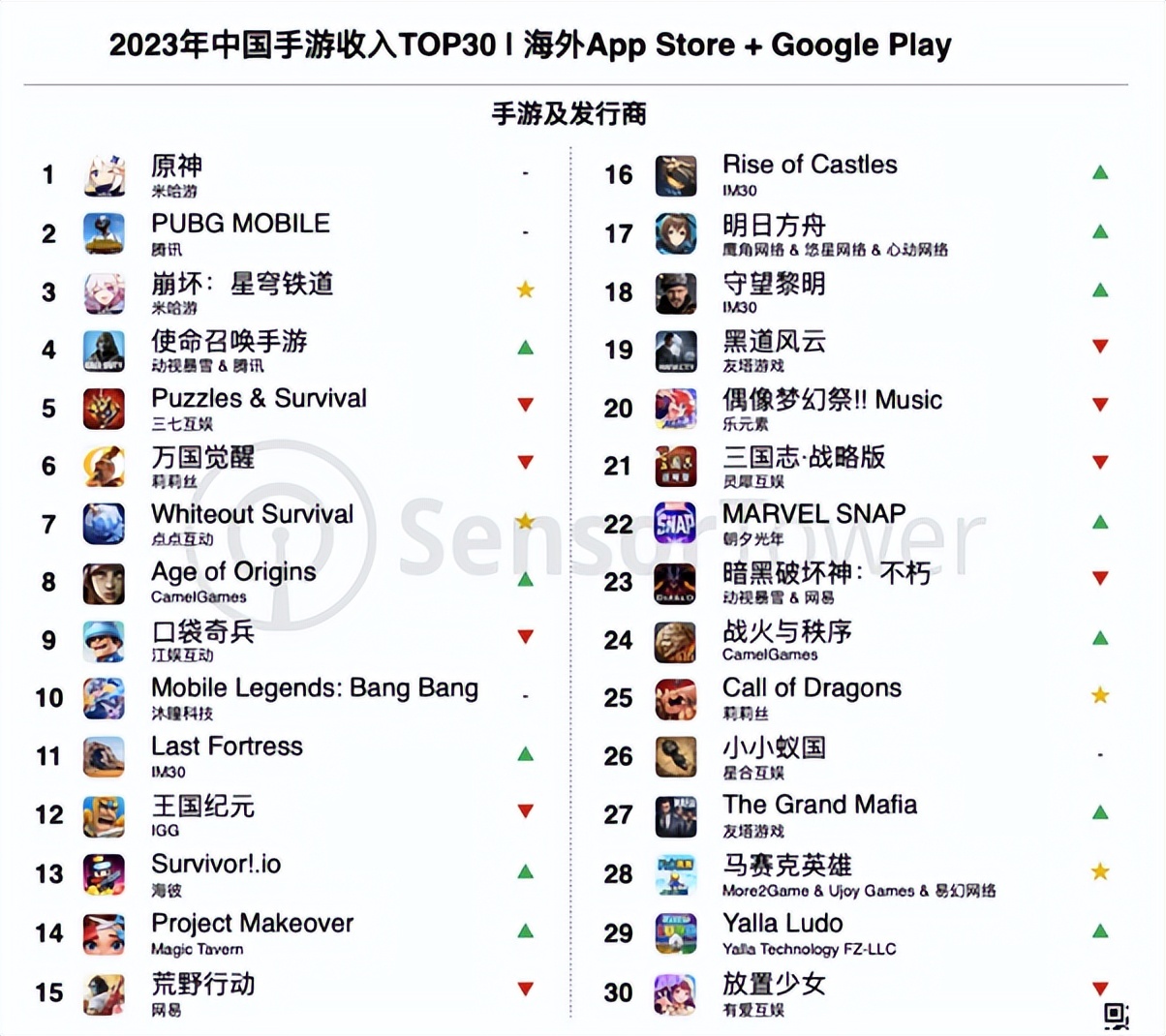 而两者的增量都来自于各自持续锤炼的多垂类赛道,如网易游戏的《蛋仔派对》稳居派对游戏首位,随后推出的MMO《逆水寒》表现也不俗;米哈游的《原神》不仅在全球RPG手游分类中位居收入榜首,去年4月新推的《崩坏:星穹铁道》一举成为RPG手游收入增长榜冠军。