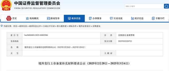 3月7日,证监会官方网站发布《境外发行上市备案补充材料要求(2025年2月28日—2025年3月6日)》,要求多家公司补充说明相关事项,并请律师核查并出具明确的法律意见,其中便包括市场高度关注的茶姬控股有限公司(霸王茶姬)。