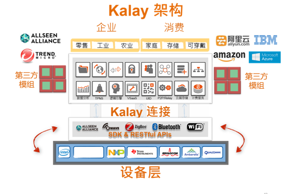 为处于不同阶段的企业提供对应的解决方案,需要云平台具备弹性化的能力组合,更要具备强大生态系统的整合能力。例如,对于仍在工业2.0时代向工业3.0时代转型的企业来说,可通过对核心生产设备互联及数据分析来开启智能化步伐;而对于高度自动化生产企业来说,打通研发、生产、销售、服务等环节数据并与企业原有系统同步互动是智能化转型所需的。以物联智慧为例,其推出的Kalay云平台提供17种模块化服务,这17种应用模块的不同组合形成按需服务的模式,可满足处于不同发展阶段的制造业企业对智能化的需求;另外,物联智慧不仅仅是云平台提供商,也与超过40家国际芯片厂家合作,整合SOC达100多种,支持当前市场主流操作系统,同时其云平台应用模块涵盖企业工厂、消费级别等各种场景的应用,因此通过生态系统的整合能力解决传统制造业智能化转型中的其他痛点。