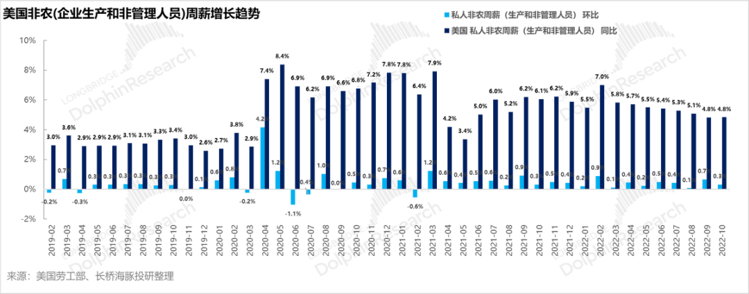 而如果不解决这个矛盾,在价格的构成要素中,人力成本(环比持续正增长,且同比增速目前在5%左右,与核心PCE基本一致)大概率会持续以超越2.5%增速持续上升,CPI要拉回到2%的中性水位非常难。