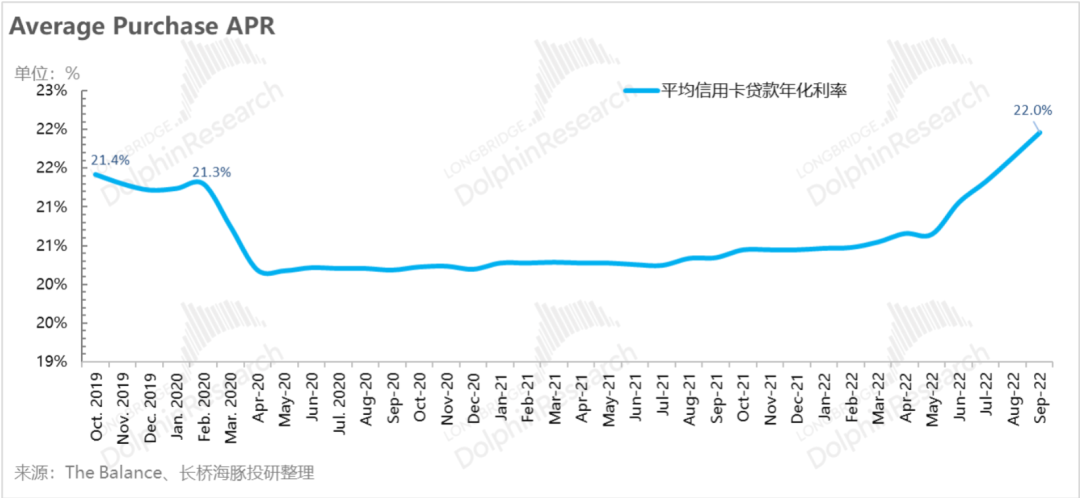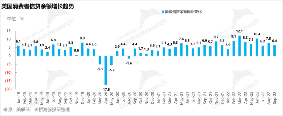 在看消费贷,美国的消费者贷款余额到9月底似乎并没有看到什么影响,还在稳定增长当中,消费贷的利率上涨程度虽然没有房贷飙涨得那么厉害,但9月消费贷款的综合年化利率已接近22%,超过了疫情前的水平,在余粮耗尽、借钱消费成本走高情况下,居民消费还能加多少杠杆需要打一个问题。