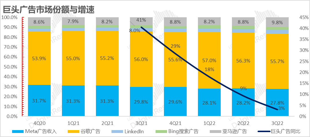 (4)竞争环境恶化:谷歌和Meta毛利率下行的核心原因与国内腾讯广告业务如出一辙,是行业新玩家入局、流量短视频化之后,短视频流量变现能力弱,但带宽成本等较高,导致毛利率结构性下行。