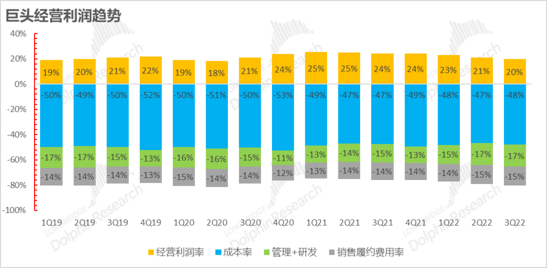 从五巨头的整体经营利润来看,整体收入相对坚挺的情况下,巨头利润不约而同齐齐下行,而归纳原因来看: