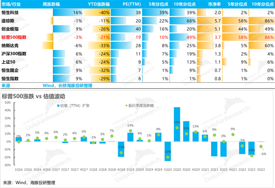 伴随三季度巨头陨落的流行雨,全球股指今年到现在跌幅普遍都达到了20-30%之间,从估值的角度,标普500指数的PE估值只有过去五年估值历史分位的8%左右,看起来足够便宜。