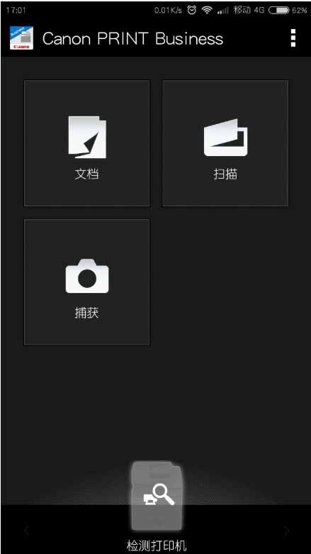 佳能移动APP界面全黑系列的极客界面,给人一种新潮范的感觉,再观其界面上的功能,仅仅只有简单的单打印功能,打印的文档来看只有图片跟网页。