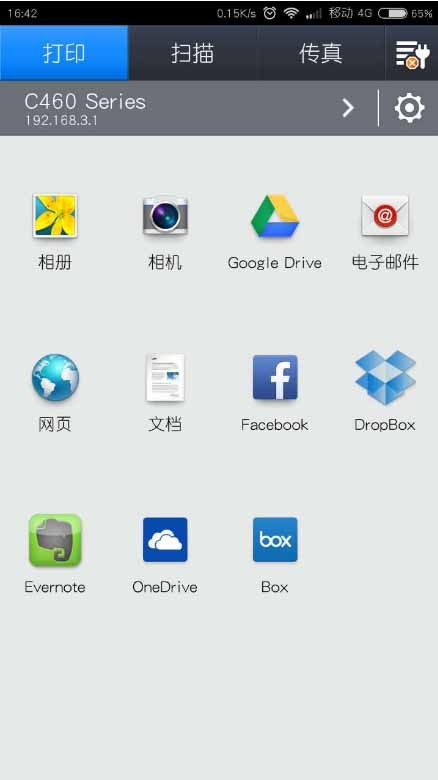 再看三星移动打印APP界面,属于简洁大气的国际范,功能上不单单局限于打印,扫描功能,同时还可传真各种文件,功能上相对来讲极为齐全,充分考虑到办公设备多用户场景下的需求。