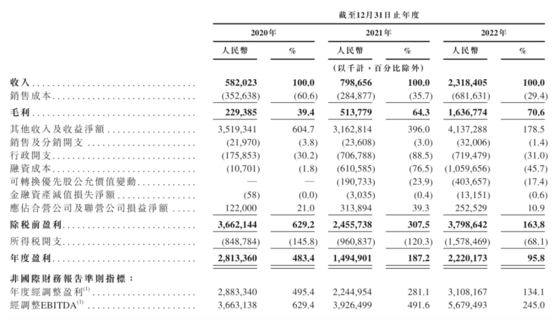 这三年间包括投资物业的公允价值变动、出售项目公司的收益、政府补助、外汇差异等其他收入净额分别为35.2亿元、31.6亿元和41.4亿元,增幅分别为-10.2%和31%。三年间净利润分别是28.1亿元14.9亿元和22.2亿元,分别增长了-47%和49%,净利润不增反降,2022年的净利润相比2020年还下滑了21%。