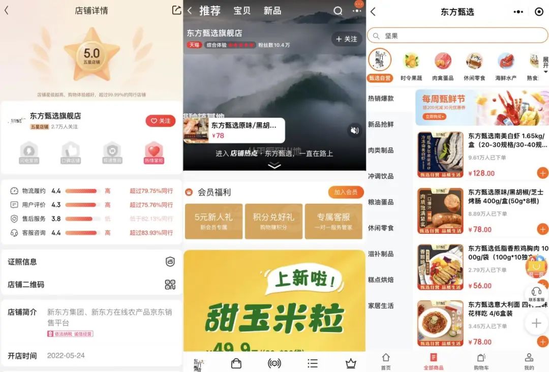 东方甄选APP、京东旗舰店、天猫旗舰店