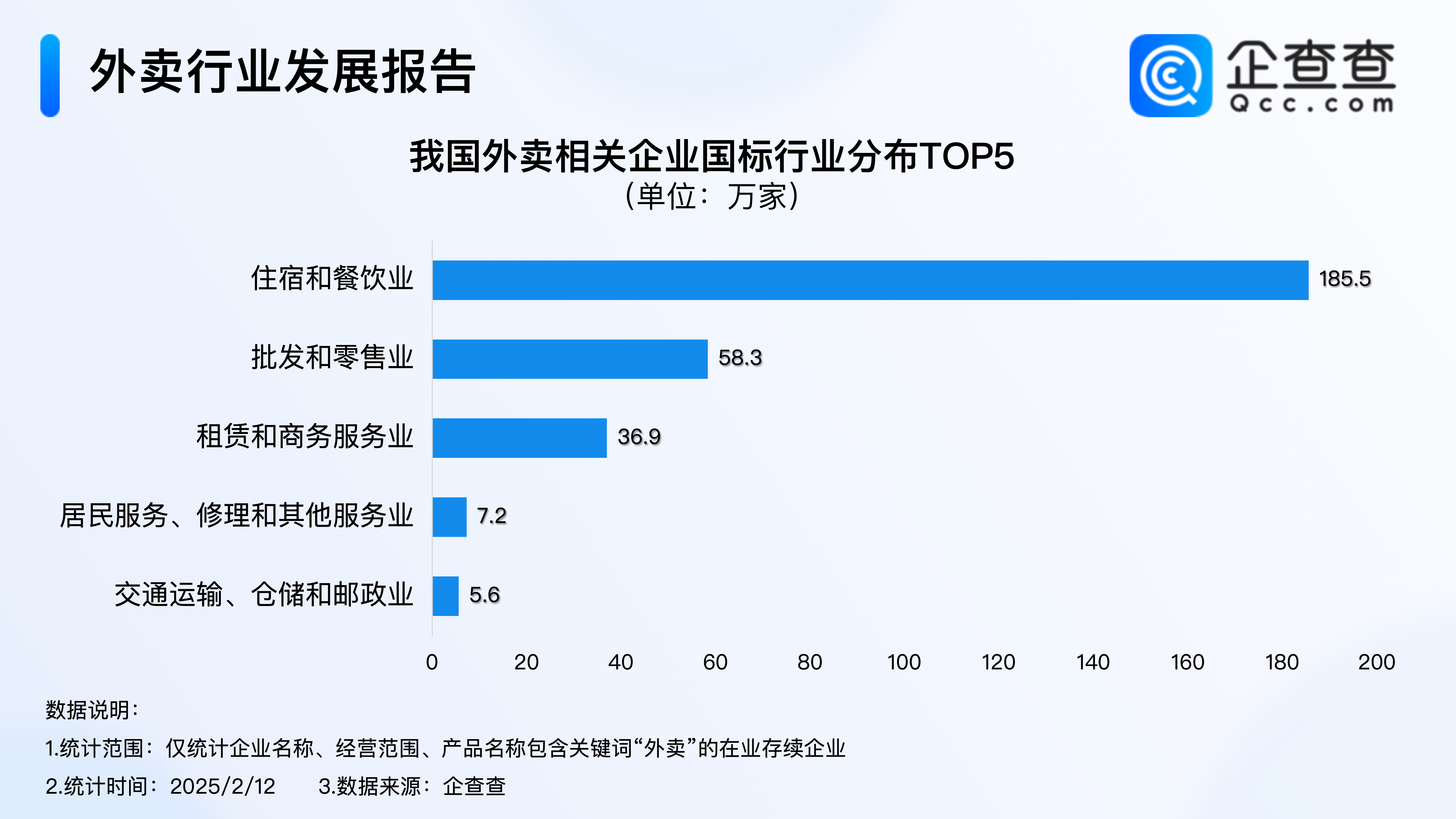 企查查数据显示,我国外卖相关现存企业主要集中在住宿和餐饮业,有185.5万家,占比59.9%;归属批发和零售业、租赁和商务服务业的企业分别有58.3万家、36.9万家,分占18.8%、11.9%。来源:企查查