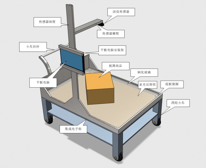 赵刚博士还介绍到,“目前竖亥小车1.0对规则物品测量的精确度误差已经缩小到毫米级,对不规则物品测量的精确度可以达到厘米级,同时整个测量过程能够控制在一分钟以内完成(包含放置物品、扫码以及测量)。此外,每台竖亥小车整体成本不到1万元,相对于动辄二十万一台的国外设备,整体成本节约超过千万!”