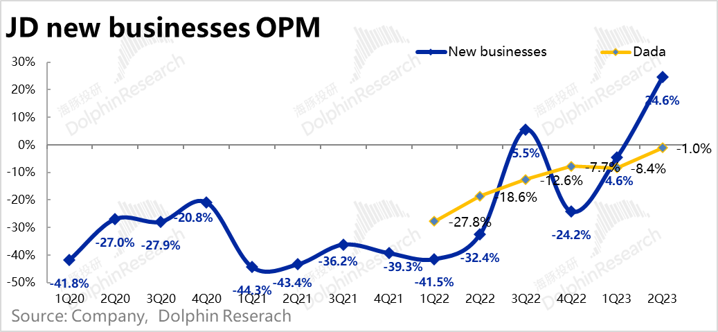 3)而包括京喜、海外电商在内新业务本季收入为43亿,和市场预期基本一致,仍在继续收缩。由于基数原因同比下降幅度缩窄到了31%。