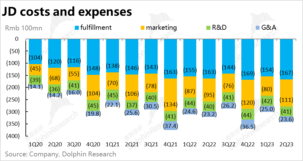其他费用中,研发和管理费用仍在环比下降,也低于市场的预期,可见除了加大补贴外,公司整体的降本周期仍在继续。而和订单量紧密相关的履约费用则同比增长了约3%,和自营零售收入的增速是基本匹配的。