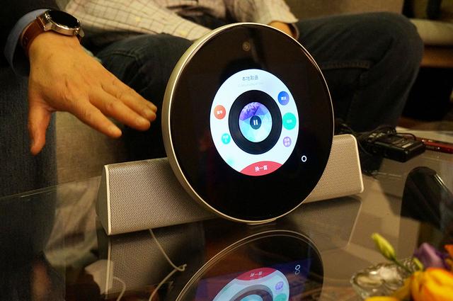 当然其实这款产品不仅是智能座机,也是一个家庭娱乐终端,它融合了音乐、电台、视频播放等功能,而且还配有一个音箱+充电底座,只要把智能座机往上一放,就连接完成了,不仅播放的效果更好,同时还能为智能座机充电,这个二合一的设计也很巧妙。