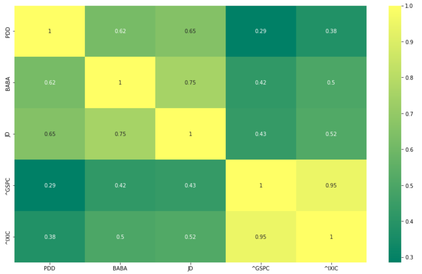 股价的相关性分析乃是量化投资最常用方法:整理拼多多上市后每日股价的波动情况,与阿里和京东进行相关性计算。