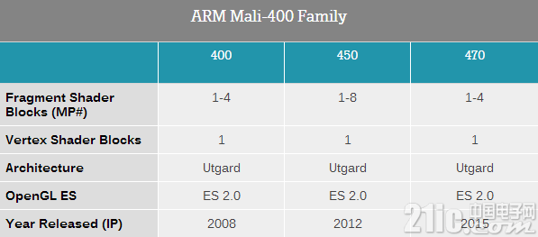 Mali是ARM的GPU产品线,目前应用最多的是Mali400,已经有超过10亿台设备采用了Mali400系列的内核。470将不仅仅局限于智能手机等移动终端的应用,而是将应用拓展到可穿戴设备等领域。从下表中可以看出,470在芯片设计方面与前辈并无极大的不同。仍然采用了OpenGL ES2.0驱动器栈,因此开发人员不仅无需重新优化现有的应用程序,还能获益于长期支持。