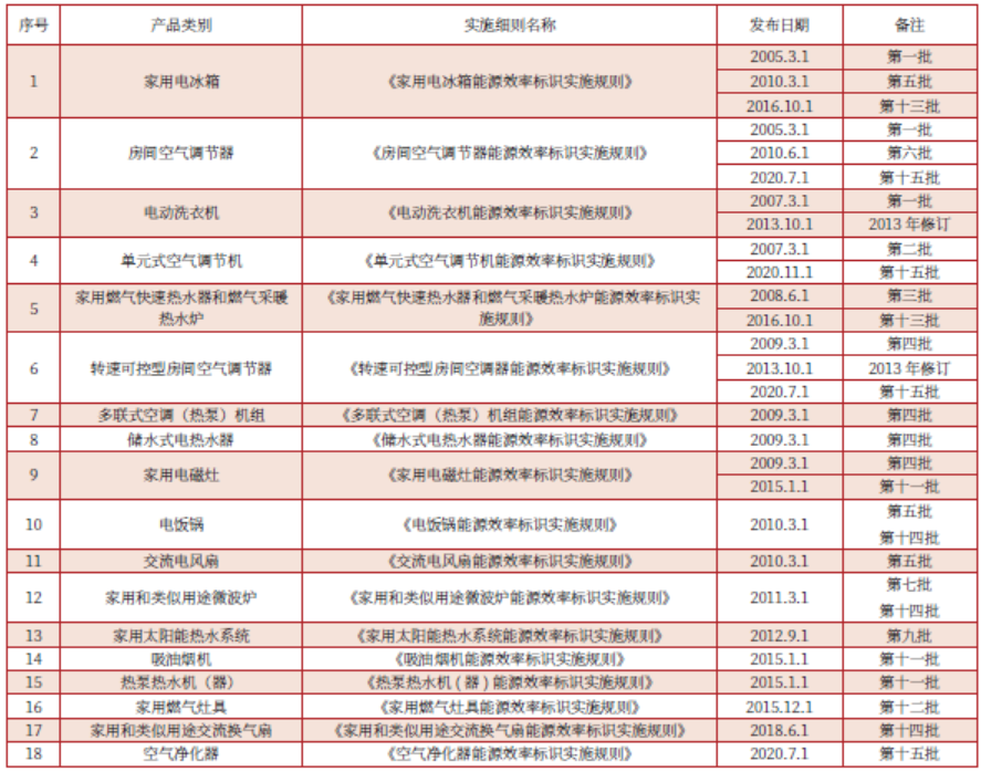 正如前文所述,为配合能效标识制度的实施,相关标准化组织针对每一类纳入能效标识的产品均制定了能效等级标准,并不断迭代,例如针对冰箱、空调、洗衣机、电磁炉、电饭锅等18项家电的标准,这些强制性的国标保障了能效标识制度的落地。
