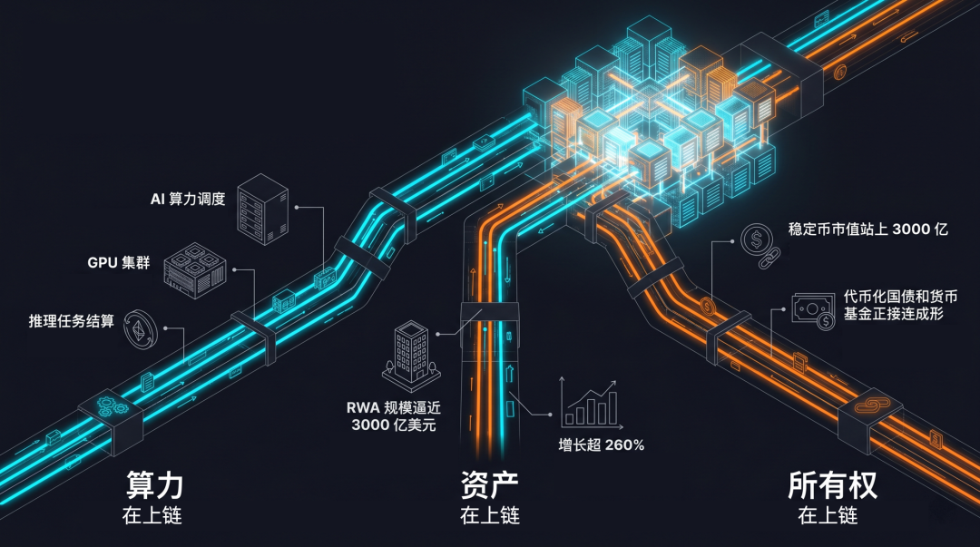 这三件事同时发生,但问题来了:如果算力、资产、所有权都要上链,谁来负责把链下那一端接好?
