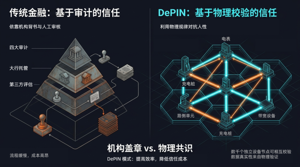 关于RWA的下一程:它能走多远,不取决于华尔街能包装出多少资产,而取决于链下的那些“铁疙瘩”产生的数据,能不能真的被机构和监管无条件信任。这道题,最终只能由DePIN来答。