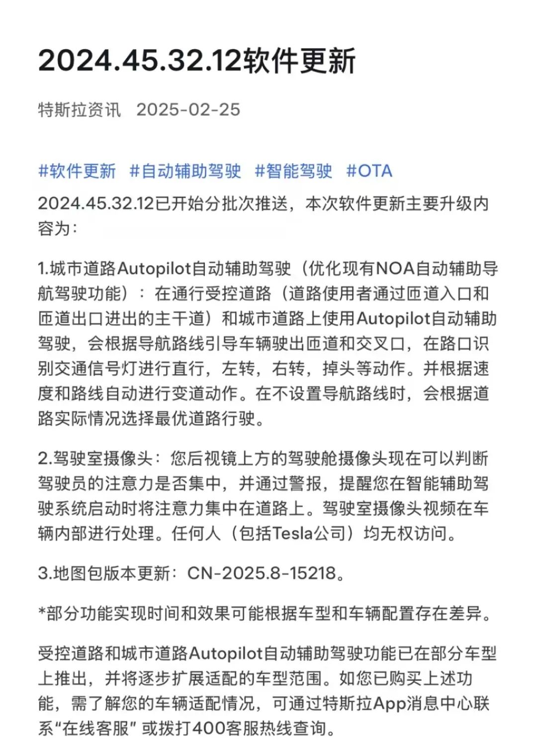 殊不知,就在昨天,万众期待的历史性时刻突然降临。特斯拉官方宣布:2024.45.32.12版本软件迎来更新,并已分批次推送。