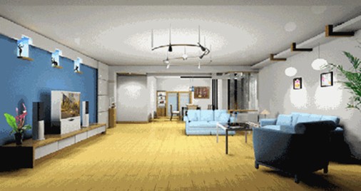 在看看客厅,通过手机连接空气盒子就可以实时的控制家中的空调,还能检测PM2.5的数值,这样不管您在哪里都可以控制家中的空调了。