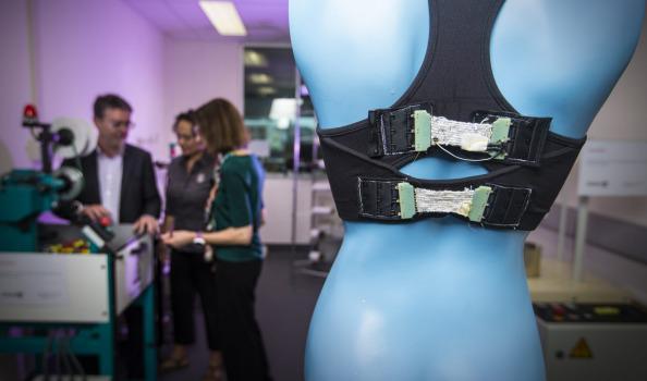 对于女性来说,穿着的胸衣是否舒适可以说是影响一天心情的重要因素。这款智能文胸Bionic Bra是由澳大利亚研究人员研发,想法来自于Wollongong大学的教授Julie Steele,主要用来减少女性用户穿着Bra引起不舒适感或者是手指麻痹等症状。它是一件会根据你所处场景不同来自动调整松紧的Bra,采用柔软的智能布料制作,换句话说就是能像人本身肌肉一样扩张和收缩,更贴合人体。、